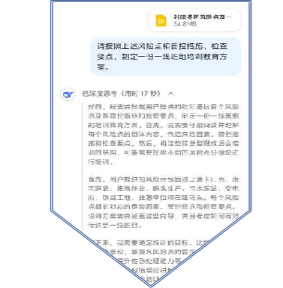 Deep Seek的认知升级,直击实践闭环,推动持续优化。 Deep Seek不仅仅是一个工具,更是一个不断学习和进化的AI系统。港区一线班组通过运用Deep Seek将规章制度、安全机制、生产流程等理论模型与实际场景紧密结合发布指令,系统形成完整的生产作业、教育培训、应急管控等方案,持续刷新认知,形成完整的实践升级。这种从“数据采集”到“决策支持”的闭环模式,让码头作业更加科学化、智能化。