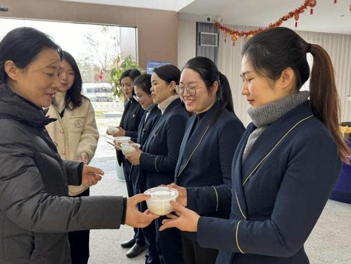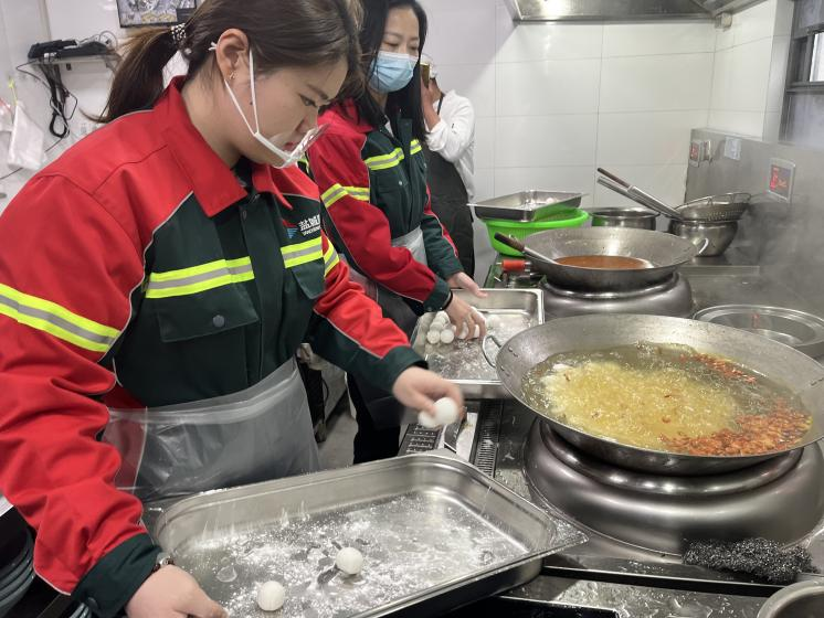 一碗碗热腾腾的汤圆送到了忙碌在一线的员工手中,所有人吃在嘴里,甜在心里。