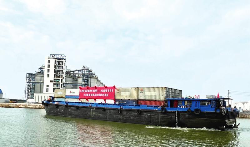 为高质量推进海上联结南北、内陆贯通东西、向海融入中日韩“双循环”新格局的有效构建,2月28日上午,盐城港集团在盐城港大丰港区内河集装箱码头,举行盐城港大丰港区至上海港宜东码头、宿迁港内河集装箱班轮航线开航仪式。