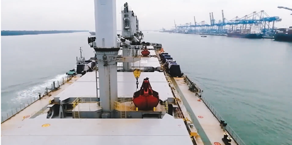 这是我们的家,盐城港。在这里有无数和我一起奋斗的兄弟。我愿在这里做这艘巨轮上一颗螺丝钉,跟它一起追梦。