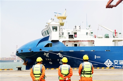 姜海鹰表示,“智飞”号是目前全球最大、中国首艘智能航行集装箱船,4月下旬,“智飞”号在山东港口青岛港正式交付,投入商业运营。数日来,这条最多可装载316个标准箱的集装箱船,每日往返于青岛港、日照港之间,成为繁忙海运大军中的一员。