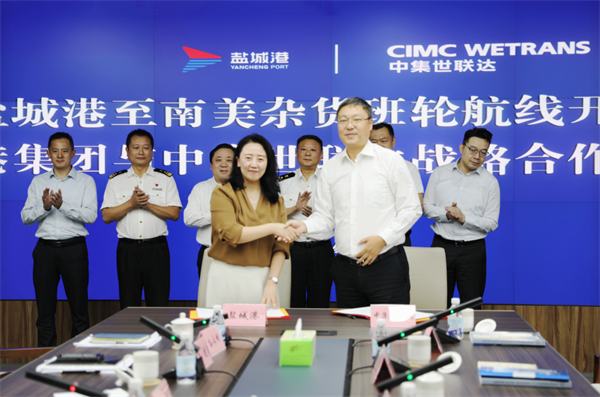 9月17日,盐城港至南美杂货班轮航线开航暨盐城港集团与中集世联达战略合作签约仪式成功举行。集团党委书记、董事长、总经理周正雄主持活动。中集世联达长江物流副总经理刘羽,盐城海关二级高级主办李健,盐城海关驻大丰港海关办事处主任崔克劲,集团总经理助理孙永峰等参加并鉴签。盐城港港口公司董事长袁欣代表集团与中集世联达长江物流公司签订合作协议。