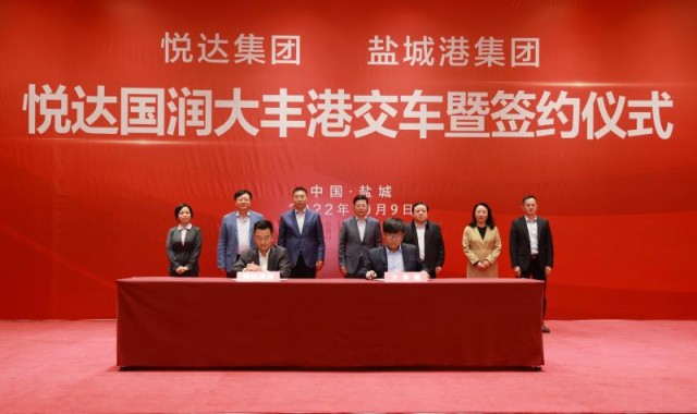 强强联合谋发展,同心协力结硕果。10月9日,悦达国润与大丰港牵引车交车暨自卸车签约仪式在盐举行。活动现场,悦达汽车集团向盐城港集团交付悦达国润电动牵引车钥匙,悦达国润公司与大丰港集团就采购换电式自卸车事宜进行签约。江苏悦达集团党委书记、董事长张乃文,盐城港集团党委书记、董事长周正雄出席活动。
