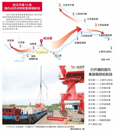 截至目前,武汉开通的国内集装箱班轮航线达到12条。