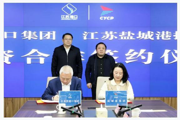 新华报业网讯 2月15日,江苏省港口集团、江苏盐城港控股集团投资合作协议签约仪式成功举行。江苏省港口集团党委书记、董事长陈明,盐城港集团党委书记、董事长周正雄出席活动并鉴签。江苏省港口集团党委委员、副总经理唐洪生,江苏省港口集团总工程师、企业发展部总经理朱从富,盐城港集团党委副书记、董事、总经理陆帅,盐城港集团领导班子成员、副总信息师等参加。集团副总经理袁欣代表集团与江苏省港口集团签订协议。
