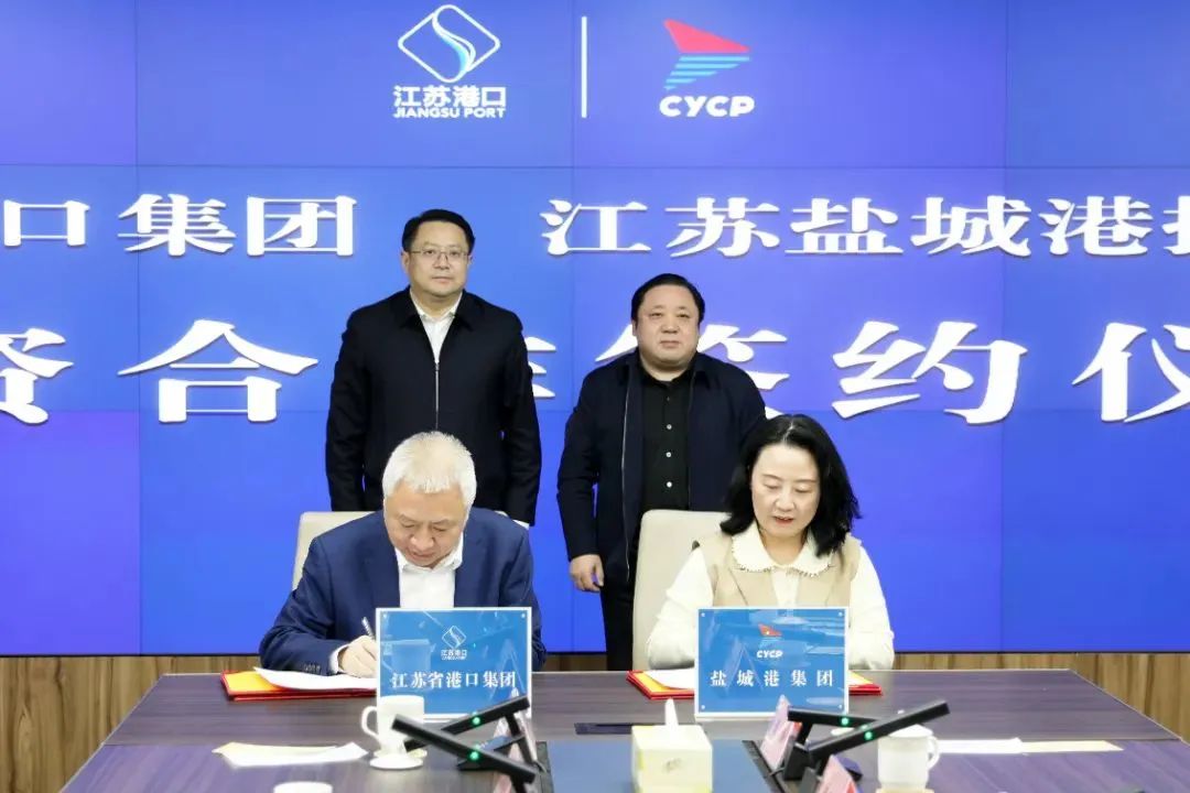 2月15日,江苏省港口集团与江苏盐城港控股集团签署投资合作协议。江苏省港口集团党委书记、董事长陈明,盐城港集团党委书记、董事长周正雄出席签约。