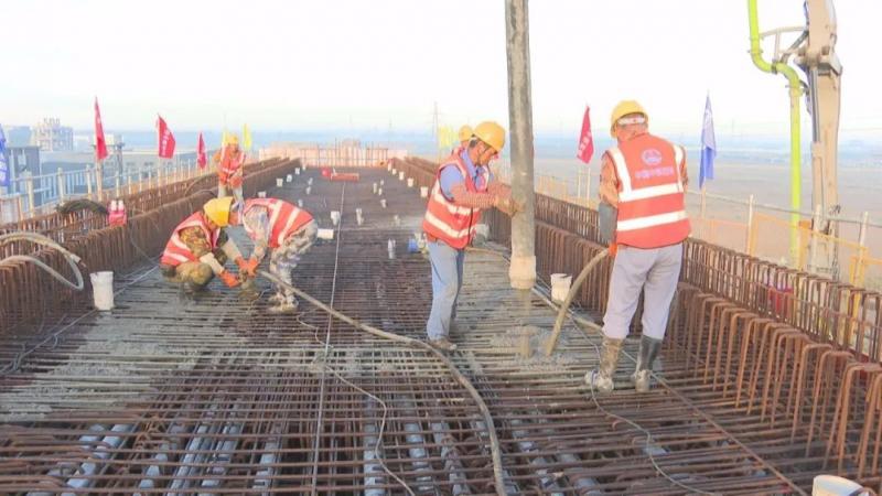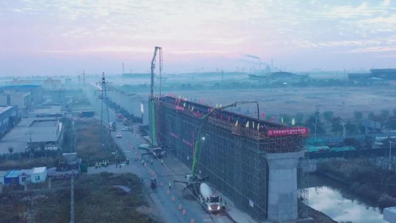 “我们承建的大丰港特大桥全长17.949公里,目前项目首个支架现浇梁一次性浇筑已完成,连续梁浇筑的完成标志着大丰港铁路支线施工建设进入新的阶段。”大丰港铁路支线工程3标经理部现场负责人陈甫军告诉记者。