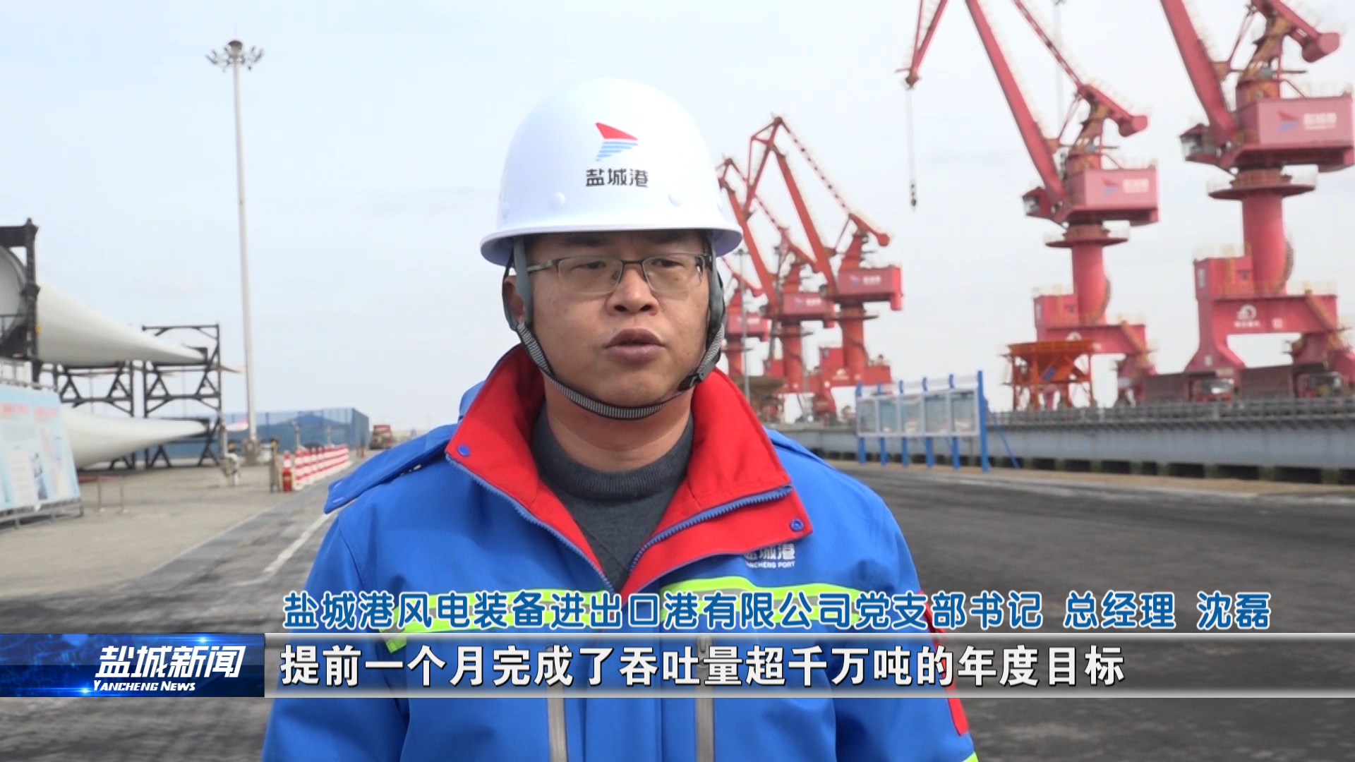 2023年,我们盐城港射阳港区吞吐量散货装卸了308万吨,风电大件设备装卸了311套,合计完成了1065万吨,提前一个月完成了吞吐量超千万吨的年度目标。