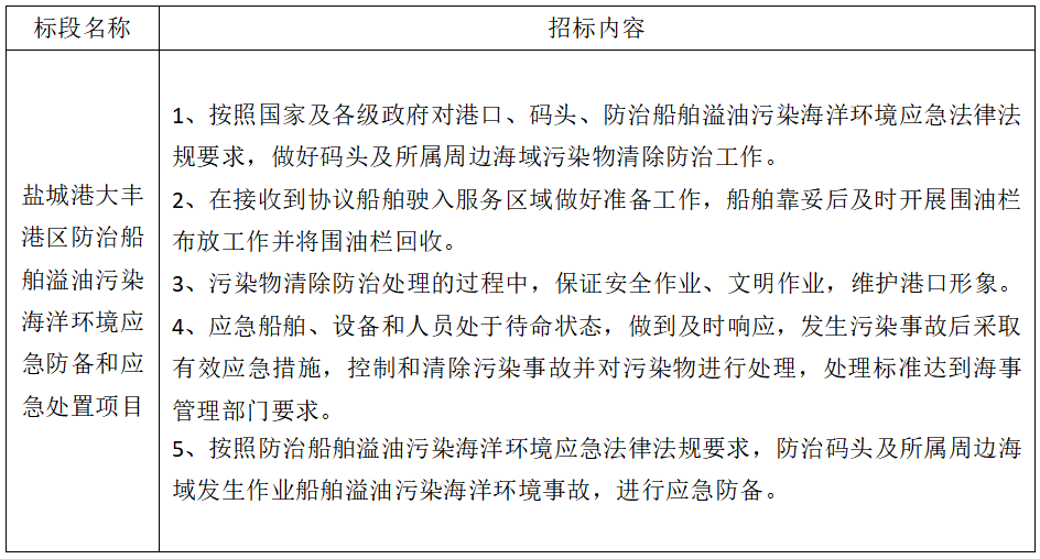1、项目名称:盐城港大丰港区防治船舶溢油污染海洋环境应急防备和应急处置项目