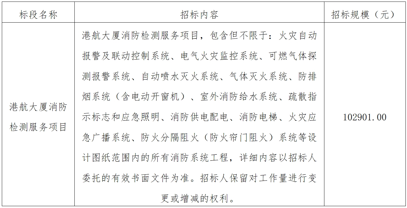 一、江苏盐城港控股集团有限公司负责实施的港航大厦消防检测服务项目已具备招标条件,项目所需资金已落实,现通过公开招标方式邀请潜在投标人参加本项目的投标。
