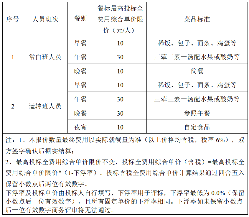 (6)招标范围:盐城港响水港区的常驻办公地点包括响水港区机关、响水港务公司、响城港务公司及联检大楼,各需设立独立食堂。响水港区每日就餐总人数约为180人,其中,机关食堂日均就餐人数约55人,响水港务公司食堂日均就餐人数约65人,联检大楼食堂日均就餐人数约35人,响城港务公司食堂日均就餐人数约25人。为了生产运营需要,每个食堂均需独立运营。