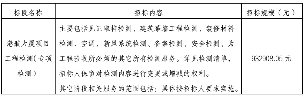 (1)项目名称:港航大厦项目工程检测(专项检测)