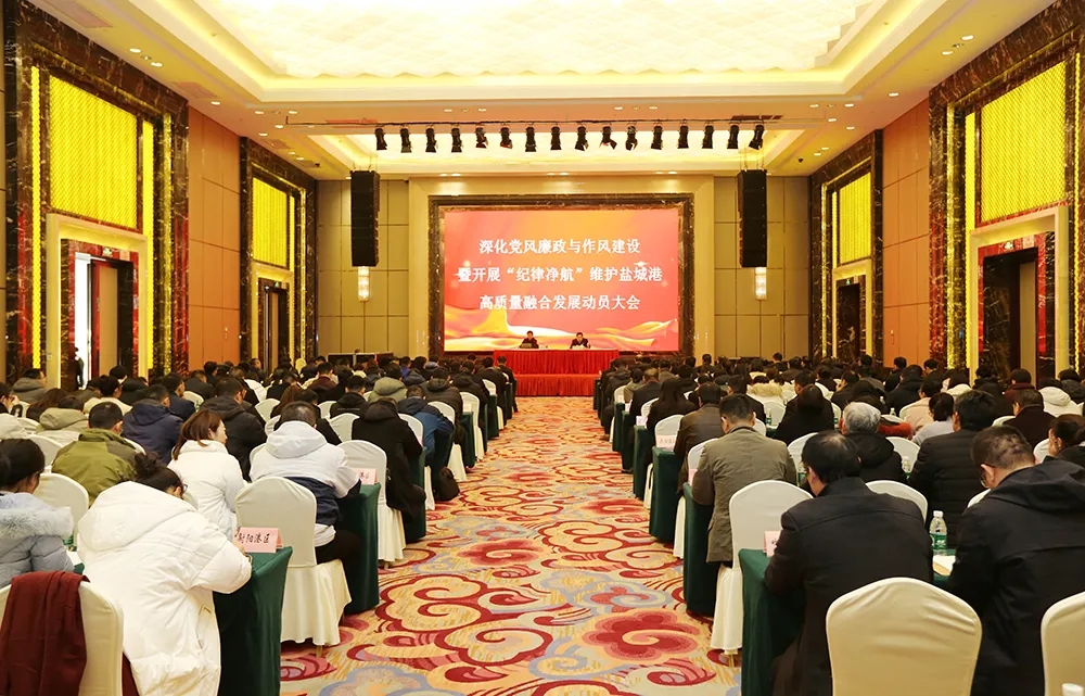 12月16日下午,盐城港集团召开深化党风廉政与作风建设暨开展“纪律净航”维护盐城港高质量融合发展动员大会。会议邀请市纪委常委、市委巡察办主任张国锋开展全面从严治党专题讲座。集团党委书记、董事长、总经理周正雄主持会议,领导班子、机关全体及二级公司中层以上干部参加会议。