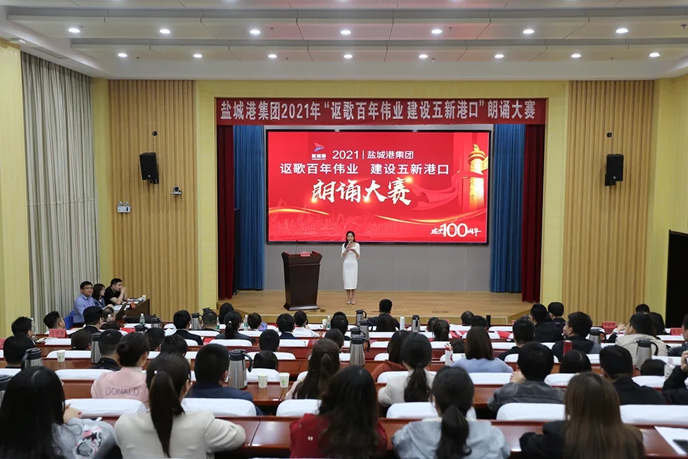本次比赛是集团党史学习教育特色专题活动之一。比赛旨在通过缅怀党的光辉历史,讴歌党的丰功伟绩,回顾与展望集团发展历程,展示盐城港人的精神风貌,增强员工爱党、爱国、爱企的意识,更加坚定永远跟党走的决心和信心,营造凝心聚力谋发展、同心同德创新业的浓厚氛围,为集团高质量发展凝聚强大精神力量。在比赛过程中,参赛选手们真挚投入、饱含深情,或慷慨激昂地抒发着对党的热爱,对祖国美好未来的向往;或柔情万种地表达着盐城港人的奋斗精神,向大家献出了一场红色视听盛宴和精神洗礼。