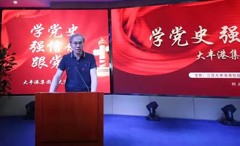 活动邀请大丰区委党校教研室主任朱司明做党史宣讲。朱司明从中国共产党的创建史、大丰人民革命史两方面,阐述了中国共产党百年奋斗的光辉历程和大丰人民革命史,既有理论阐释、又有案例剖析,既有政治高度、又有实践深度,对于大丰港区下阶段更好地开展党史学习教育具有很强的指导作用。
