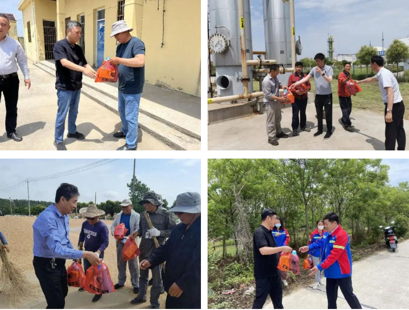 农业科技集团积极贯彻落实盐城港集团党委的部署要求,以“党建领航”为指引,把握正确方向,大力弘扬社会主义核心价值观,坚持以“职工为本”,加强高温季节一线人员生活保障工作。日前,农业科技集团开展“夏送清凉·党旗红”慰问活动,公司领导班子分别率队看望慰问奋斗在高温一线的职工,为他们送去夏季劳保用品,并向他们致以诚挚的关心与问候,为广大一线干职工带来了丝丝“清凉”。