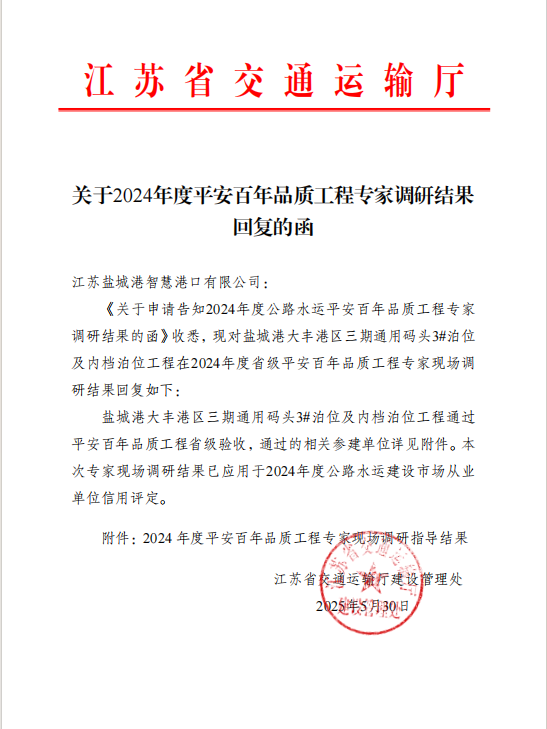 “党旗红,港湾绿”品牌,是公司党委立足港口建设特色,对“三个一线”活动成效的高度凝练与升华。“党旗红”象征着党对港口事业的坚强领导,是引领发展的鲜明旗帜;“港湾绿”则寓意着安全、生态、高效、可持续的现代化港口建设目标,是高质量发展的生动底色。品牌以其鲜明的政治性、突出的专业性和丰富的实践性,创建成果转化成效持续彰显。项目管理更加规范高效,重大节点完成率100%;安全生产形势持续稳定向好,连续2年未发生安全生产责任事故;工程品质屡获行业嘉奖,工程建设公司、港湾建设集团分别荣获大丰“五星级企业”和“四星级企业”称号。代管的盐城港滨海港区仓储物流项目等4个项目获评2024年第一批次盐城市建筑施工标准化“示范工地”,盐城港响水港现代产业园项目等4个项目获评2024年度江苏省建筑施工安全生产标准化工地。盐城港大丰港区三期通用码头3#泊位及内档泊位工程获评2024年度省级“平安百年品质工程”。参建队伍凝聚力战斗力显著提升,为公司在激烈的市场竞争中赢得了声誉和先机。