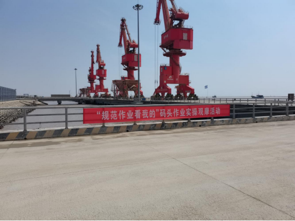为加强码头作业现场的安全生产规范化管理,进一步提升安全生产作业以及标准化队伍建设水平,4月14日上午,射阳港区在码头现场开展“规范作业看我的”观摩活动,市国资委副主任马如超出席,盐城港集团安全环保部、生产经营技术部相关负责同志参加。
