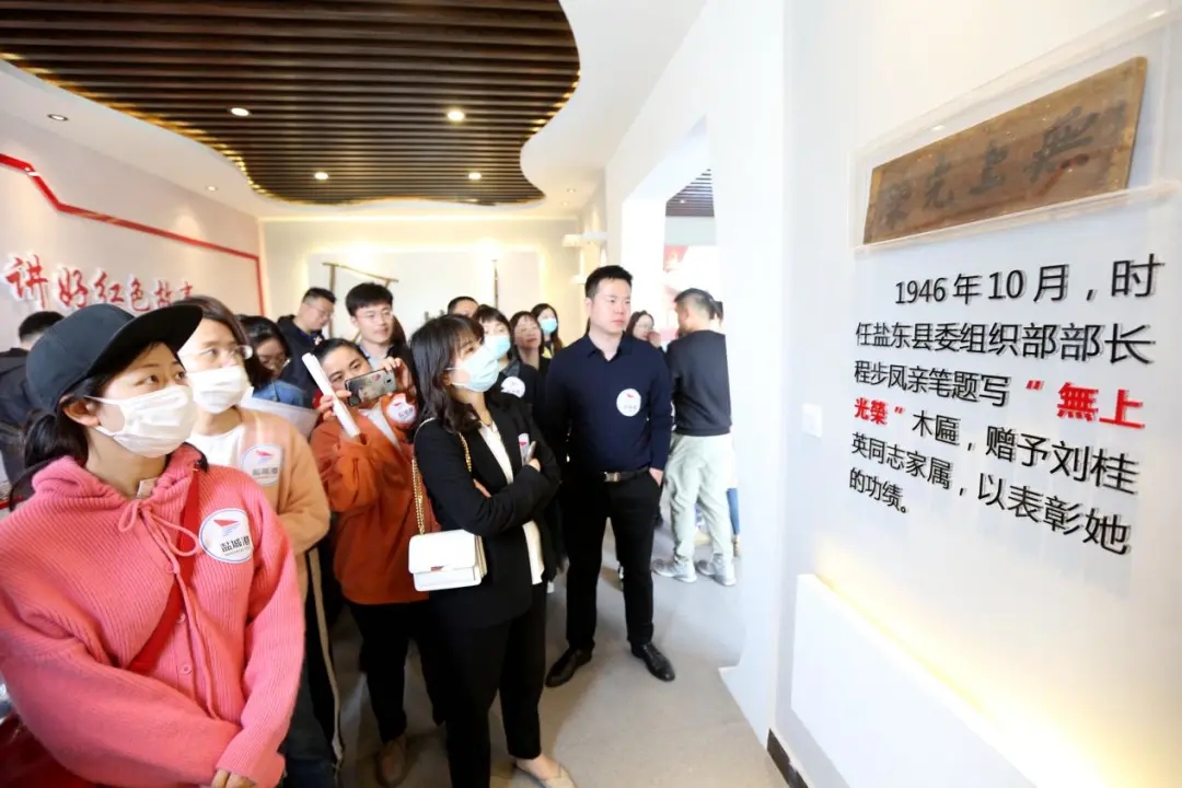 党团共建、走进红色基地,在桂英红色教育纪念馆,盐城港集团青年职工代表们在解说员的引导下,详细了解红色革命历史,对刘桂英烈士英勇奋战、不惧牺牲的大无畏精神有了更深的感悟。大家们纷纷表示,要铭记烈士精神,充分发扬刘桂英烈士革命精神的感召力量,把红色基因传承下去,珍惜现在的幸福生活,更加努力学习和工作。随后,青年职工代表们在烈士纪念碑前缅怀为革命事业献出生命的先烈们。