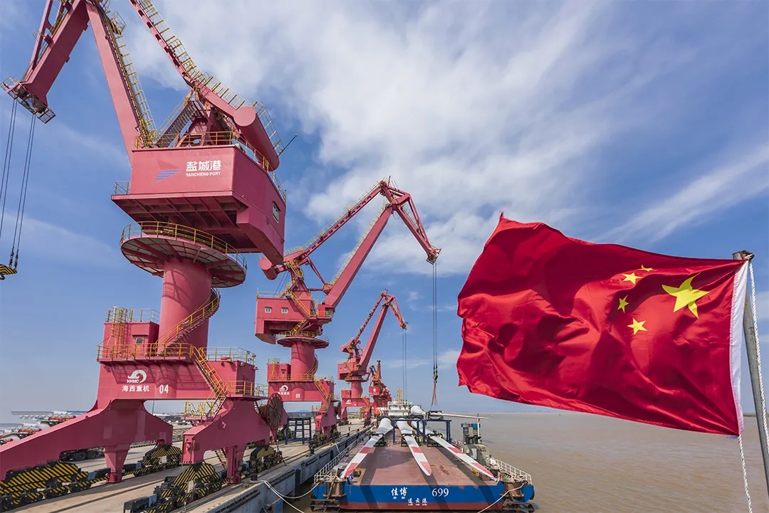 潮起东方,浩荡无疆。海洋强国是中华民族走向复兴的伟大战略,海洋资源得天独厚的盐城迎来了黄金机遇。向海而立,弄潮而兴,一场经略海洋的变革全面展开,一番系统整合的布局强势推进。握指成拳以聚力,盐城的港口人集聚成一个“军阵”;掌运五指而发力,盐城披荆斩棘锻造出一支向海强兵。合众港为一港,大丰港区、射阳港区、滨海港区、响水港区四海港蓄势而发,阜宁港区、建湖港区、亭湖港区、东台港区、步凤港区五内河港环环相扣,盐城港引航站正式加入大家庭,连天涯为比邻,塔吊如林,巨轮如山,集装箱“峰岭叠彩”,长三角北翼航运枢纽雄姿英发,盐城向海图强的引擎轰天震响。