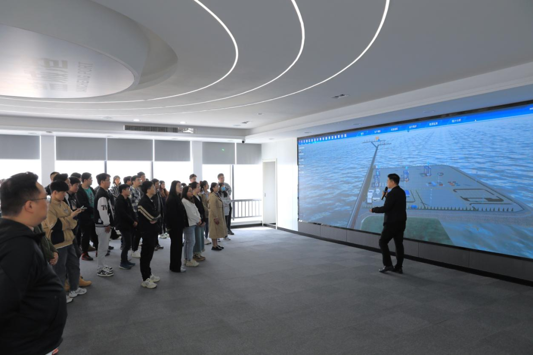 活动当天,团员们首先来到盐城港自动化集装箱堆场进行参观。作为全省沿海地区首个自动化集装箱堆场,盐城港自动化集装箱堆场项目具有自动化无人轨道吊、智能一体化操作系统、5G+北斗融合网络、强弱电智能化系统等四项核心技术,综合运用自动化控制、数字孪生等先进手段,实现整个堆场作业区域的无人化,并将作业效率提升30%以上。团员们在自动化集装箱堆场及码头前沿,详细听取工作人员详实而生动地现场讲解,领略港口码头开阔磅礴的壮美风光,深刻领悟“科技兴,港口兴;科技强,港口强”的深刻内涵。