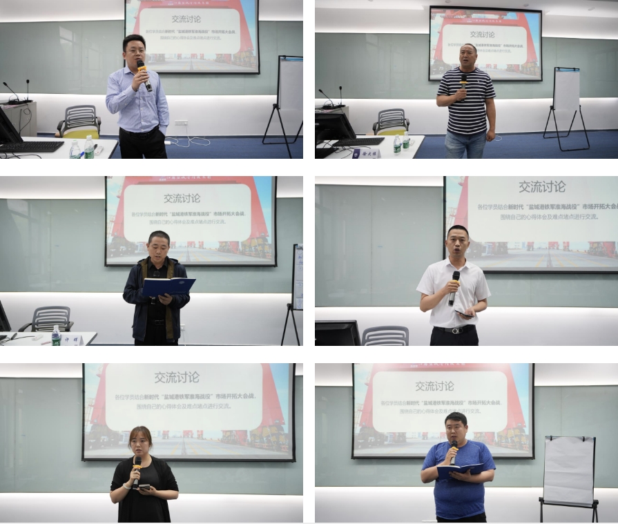 全体学员坚持专业学习不动摇,坚持能力提升不停步,坚持业务交流不放松,围绕新时代“盐城港铁军淮海战役”市场开拓大会战,围绕心得体会及难点堵点进行交流。聚焦工作实际,围绕专业定位,结合课程内容和自身专业特长,开展交流研讨,分享经验做法,相互学习借鉴,实现优势互补,切实提高市场营销的能力水平。