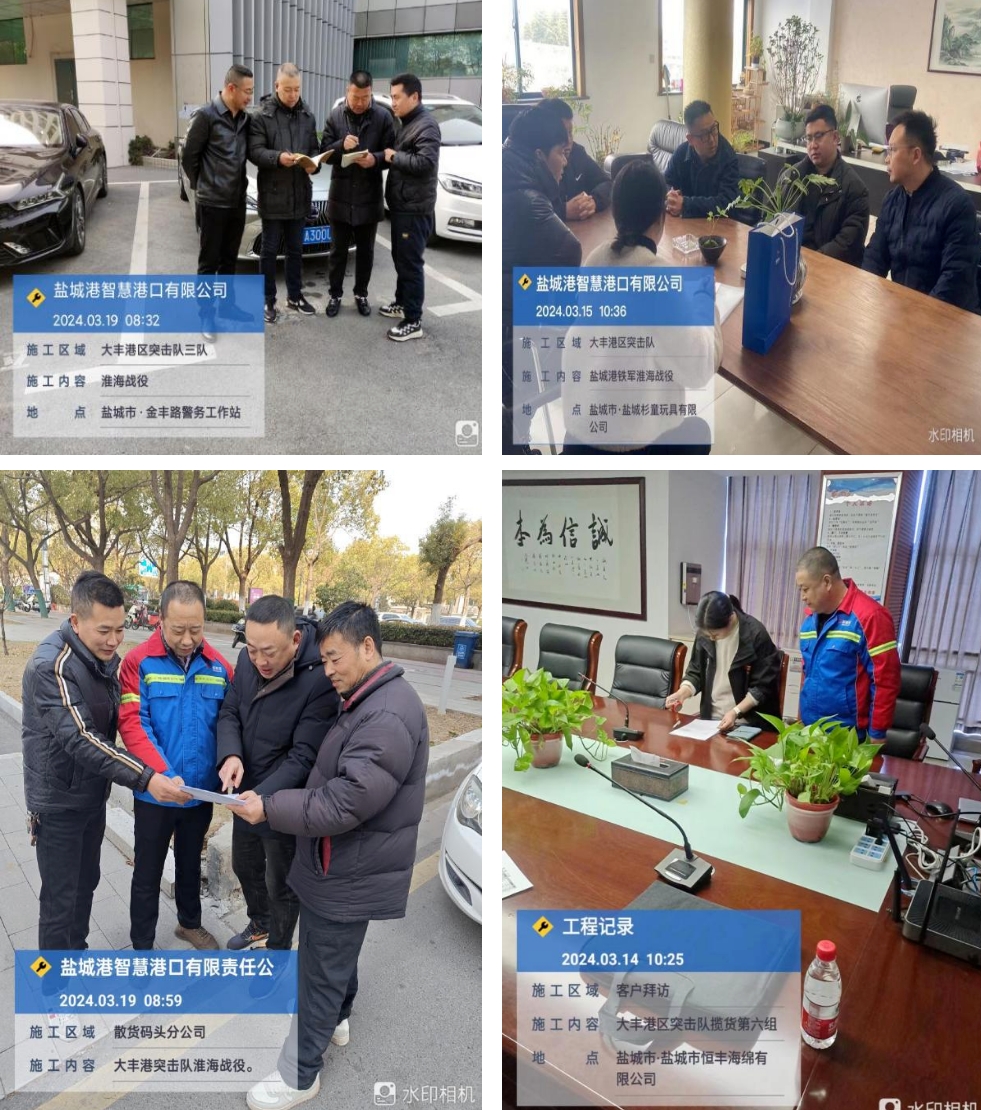 大丰港区突击队采用“早布置、晚总结”工作模式,全方位开展业务拓展。在走访过程中,队员们发扬“四敢”精神和“铁军”精神,紧扣“算账式揽货、定制化服务、分星级定价、一季一走访、修正式创新、增效益共赢”总体要求,宣传盐城港优势资源,现场解答客户难题,记录需研究的问题。