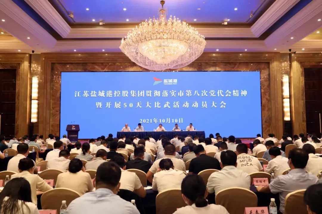 10月10日,集团召开贯彻落实市第八次党代会精神暨开展50天大比武活动动员大会,集团党委书记、董事长、总经理周正雄出席会议并讲话。集团党委委员、纪委书记周旭东主持会议。集团党委委员、董事、副总经理丁安广、夏立新、陈正华,集团机关全体工作人员,集团各二级子(控)公司班子全体成员、各部门负责人,各内河港区、水上服务投资公司班子全体成员,盐城港引航站班子及部门负责人,集团三级及以下子(控)公司主要负责人等参加会议。
