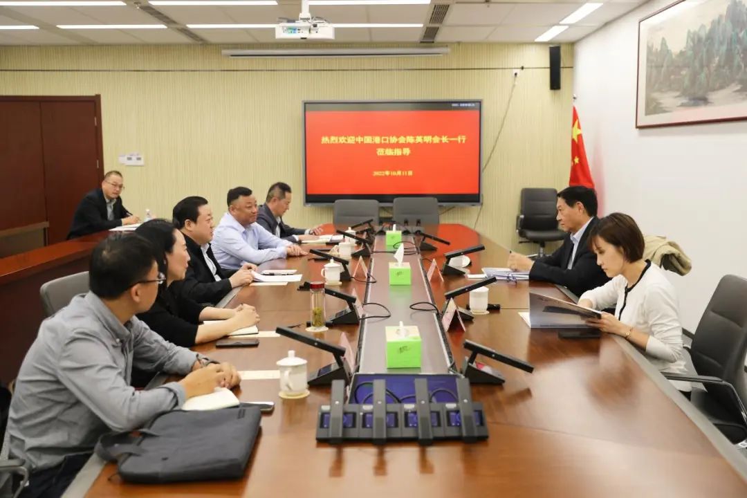 10月11日,中国港口协会常务副会长陈英明率队来我集团进行调研,集团党委书记、董事长周正雄接待陈英明一行。中国港口协会副秘书长顾寅,集团党委委员、纪委书记周旭东,集团副总经理袁欣,集团总经理助理孙永峰等参加。