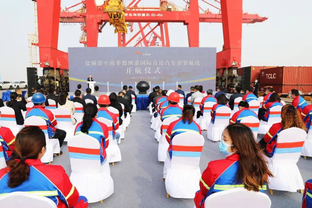 滚装码头是盐城港打造区域综合性枢纽港的重要组成部分,承载盐城汽车出口和活牛进境等口岸功能。集团成立以来,持续在发挥现有港口码头能级最大效益上发力,去年顺利推进滚装码头对外开放通过省级验收。今年5月,国务院办公厅发布《关于推动外贸保稳提质的意见》,指出要鼓励创新、绿色、高附加值产品开拓国际市场,支持国外消费者购买中国品牌汽车;7月,国家商务部等17个部委联合发布《关于搞活汽车流通扩大汽车消费若干措施的通知》,滚装码头的发展迎来了新的契机。面对新形势,集团党委深入识势、精准看势、主动应势,充分利用现有滚装码头及船舶、汽车堆场等优质资源,积极与长城汽车、北京华图等业内知名汽车制造企业、物流代表合作,开通盐城港至南非地区外贸汽车滚装航线。今天航线的正式开通,将进一步加深盐城与“一带一路”沿线国家特别是与非洲国家的经贸合作,为高质量推进“一带一路”交汇点建设提供坚实的物流通道支撑。