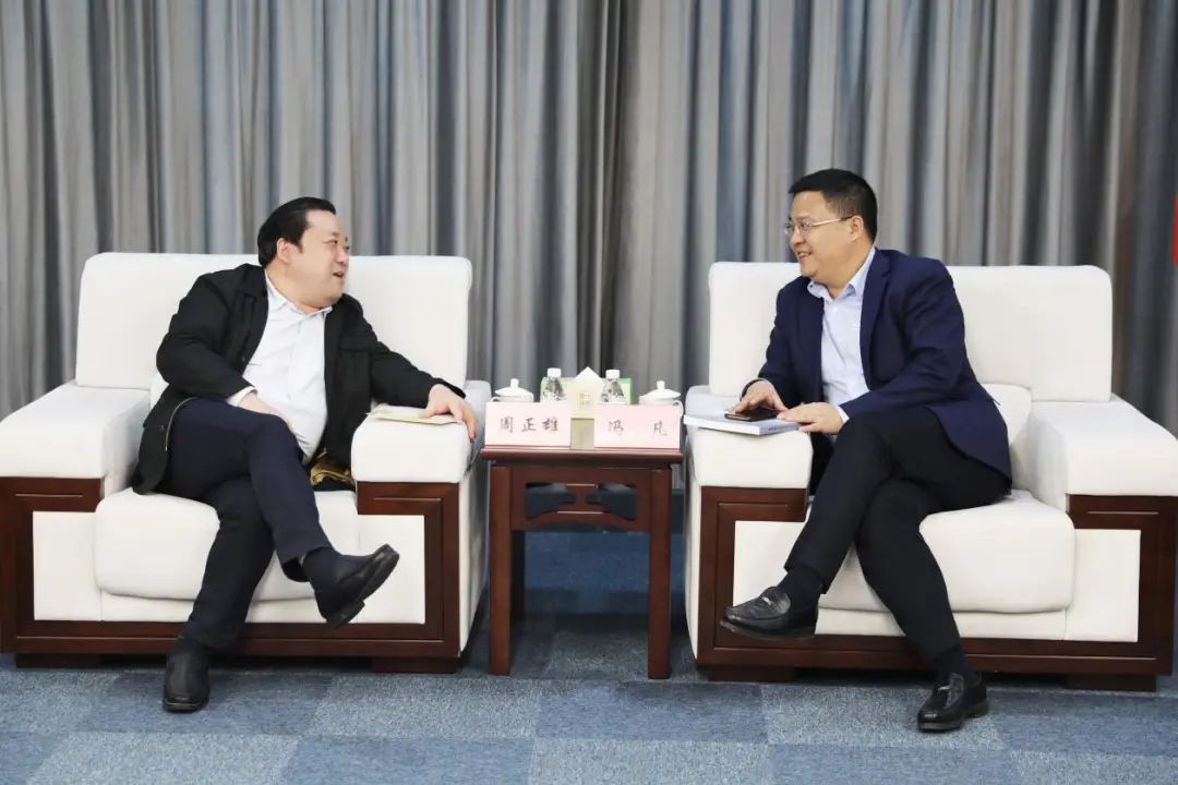 11月2日,集团党委书记、董事长周正雄会见工商银行盐城市分行党委书记、行长冯凡一行,双方就加强交流合作进行洽谈。集团党委委员、副总经理丁安广等参加。