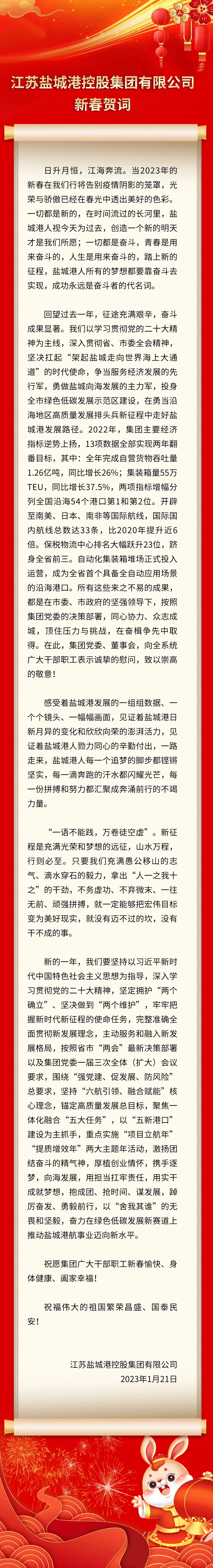 江苏盐城港控股集团有限公司新春贺词