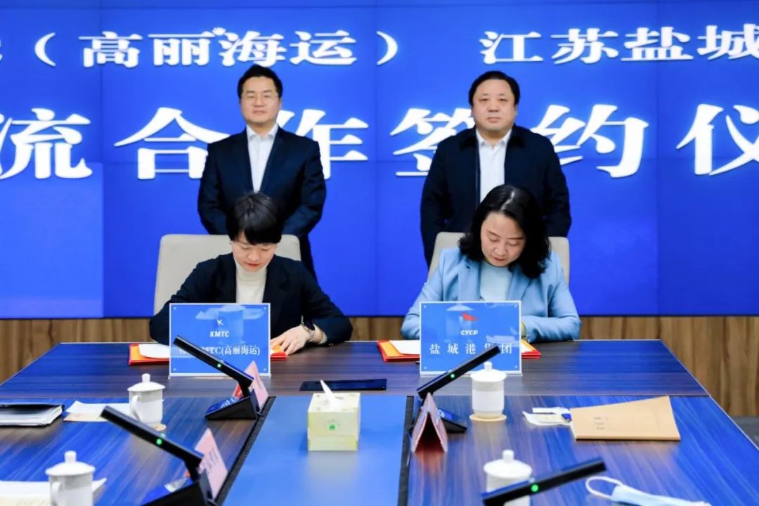 2月17日,江苏盐城港控股集团、韩国 KMTC(高丽海运)物流合作签约仪式成功举行。盐城港集团党委书记、董事长周正雄,高丽海运(上海)有限公司总经理李尚桓出席活动并鉴签。集团党委副书记、董事、总经理陆帅等参加,集团副总经理袁欣代表集团与高丽海运(上海)有限公司进行签约。