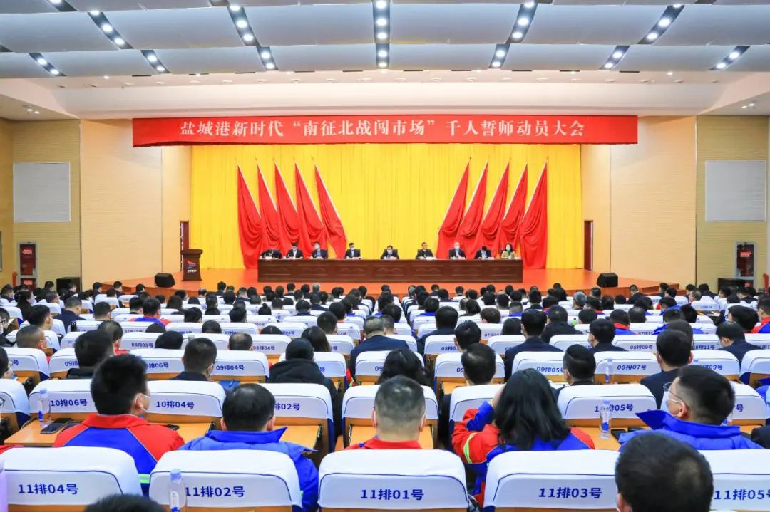 2月24日,盐城港新时代“南征北战闯市场”百日攻坚千人誓师动员大会胜利举行。集团党委书记、董事长周正雄出席会议并讲话。集团党委副书记、董事、总经理陆帅主持会议。集团领导班子成员,集团机关全体工作人员,各二级公司班子全体成员、各部门负责人,盐城港引航站中层以上人员,各内河港区班子成员,二级以下子(控)公司主要负责人,新时代“南征北战闯市场”百日攻坚活动全体人员等参加。