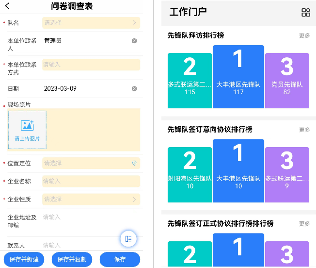该系统集成了在线问卷、定位打卡、成果评比、统计分析等功能。与传统的纸质问卷相比,该系统减少了表格录入、汇总上报、统计分析等环节,实现了全过程无纸化、自动化操作,极大地提高了工作效率。同时,该系统还具备在线成果评比等功能,实时展现各先锋队工作成绩,为进一步激发各先锋队你追我赶的战斗激情提供了技术支撑。