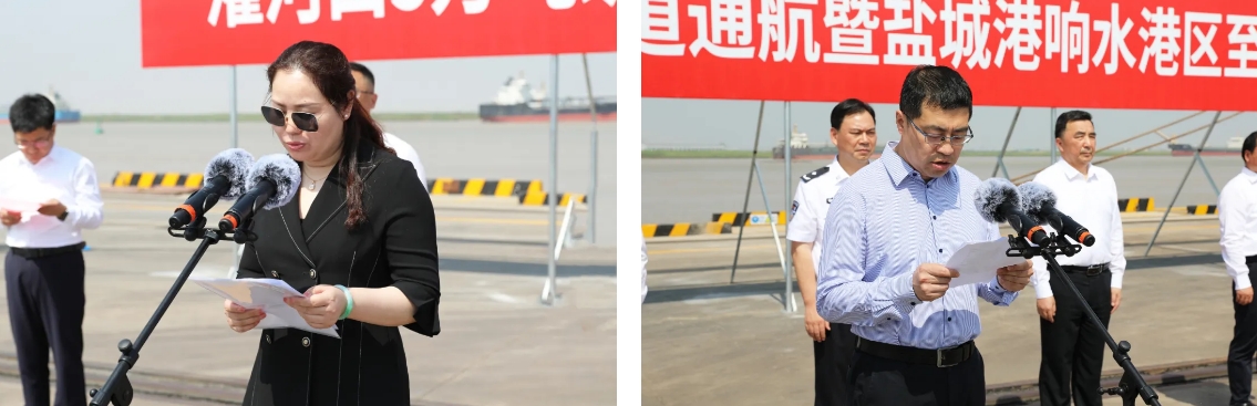 在全市上下深入学习贯彻市委八届七次全会精神,勇当全省发展新质生产力的“碳路先锋”,全面推进“水运江苏”建设和海洋经济高质量发展的重要时刻,6月13日上午,灌河口5万吨级航道通航暨盐城港响水港区至东非国际航线开通活动成功举行,标志着盐城沿海“一港四区”万吨级以上航道实现通航全覆盖,对盐城港加快构建“河海联运”新格局,推动沿海地区高质量发展,打造“蓝色经济”增长极具有重要意义。市委常委、副市长王连春宣布通航。盐城港集团党委书记、董事长周正雄介绍相关情况。连云港海事局副局长丁星,响水县委书记郭超出席活动并致辞。市政府副秘书长陶晓林主持。