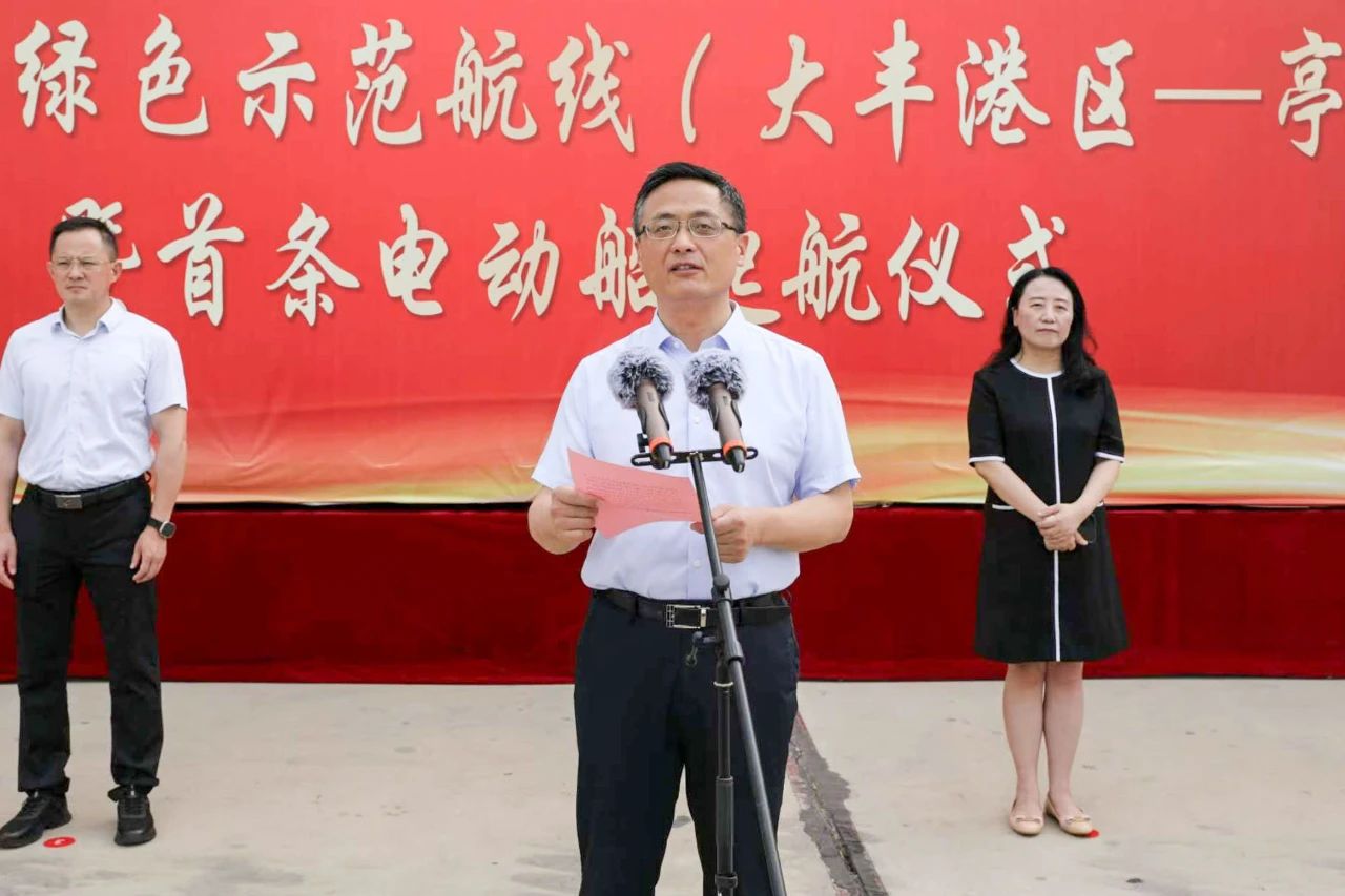 陆帅表示,绿色发展是高质量发展的底色,绿色示范航线的开通及电动船的启用是落实集团关于构建绿色、生态、智慧、平安、美丽“五新示范港”的有力抓手,是盐城港深入辐射淮河生态经济带、全力打造淮河生态经济带出海门户的生动实践,为实现河海联运一体化发展提供了有力支撑,为落实“碳达峰、碳中和”等中长期战略目标奠定了坚实基础。集团全体干部职工要以今天的开航为新起点,发扬开拓创新“拓荒牛”精神,主动下好淮河战略的“先手棋”“制胜棋”“长远棋”,充分发挥江苏独特的水韵之美、水运之利,为腹地企业提供更加经济、便捷、可靠的物流服务,积极策应绿色低碳发展新趋势,全力在发展新质生产力进程中寻求新突破,接续奋斗、再立新功,奋力为盐城勇当全省发展新质生产力重要阵地“碳路先锋”作出更大贡献。
