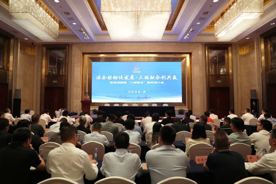 周正雄在致辞中向长期以来关心支持盐城港发展的各界朋友表示衷心感谢,并介绍盐城港相关情况。他说,一直以来盐城港始终以客户为中心,坚持“算账式揽货、定制化服务、分星级定价、一季一走访、修正式创新、增效益共赢”,积极串联供应链贸易、船货代、码头、仓储、运输等全程业务链条,推动产业链和物流链有机结合形成稳定的供应链,在此基础上,通过“供应链+金融”,推动产业链、物流链、供应链“三链融合”发展,全面提升价值链,与在座的各位客户朋友形成紧密联系的利益共同体、事业共同体、命运共同体。集团将以今天的活动为契机,进一步强化服务意识,充分发挥港航物流业在区域经济中的“链长”效应,围绕“全国公铁河海联动示范区”建设目标,加快推进沿海港口和内河港口、海上航线与内河航道互连互通,推动“三链”融合发展,让“港口流量”变区域“经济增量”。期待与各界伙伴进一步加强交流、创造条件、共享机遇,携手共赢、共创未来。