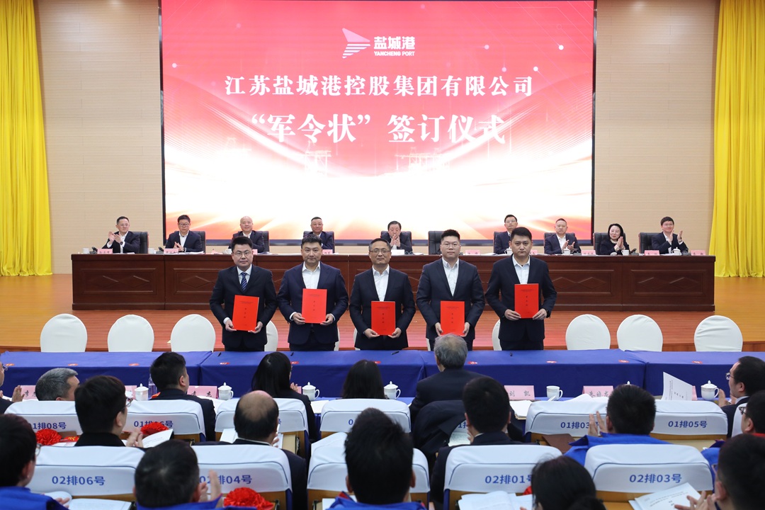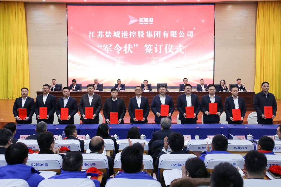 会议宣读了关于表彰2024年度先进集体及个人的决定,并为获奖代表进行颁奖;科技集团、大丰港集团、响水港集团等5家单位作表态发言。资本运营公司、大丰港集团、航运集团和集团投融资部等10单位和部门现场签订生产经营军令状。