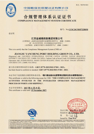 合规管理是企业稳健发展的重要保障。2024年,集团成功获得权威认证机构中国船级社评级公司颁发的省内港口行业首张合规管理体系认证证书,这标志着集团合规管理体系建设达到了新的高度,得到了行业与社会的广泛认可。