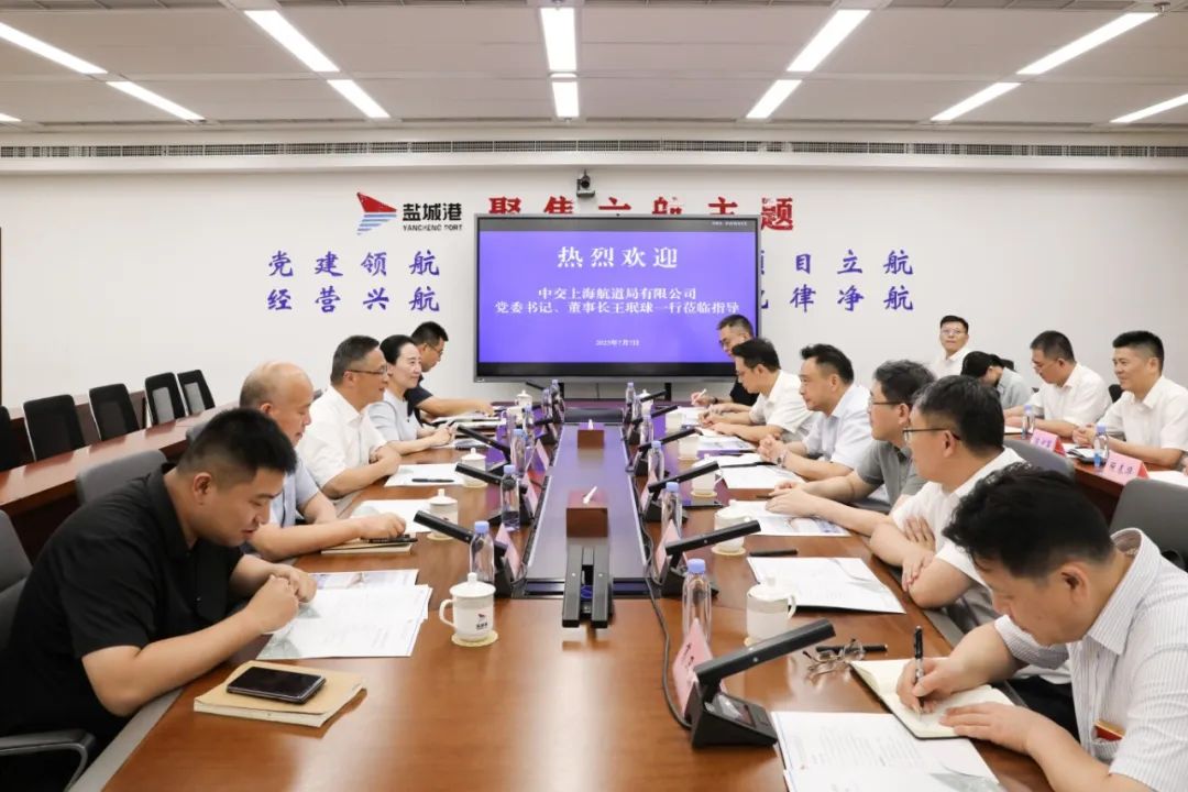 7月7日,集团党委书记、董事长陆帅会见中交上航局党委书记、董事长王珉球一行,就进一步深化合作进行交流。集团总经理袁欣,集团党委委员、副总经理丁安广,中交上海航道局及盐城港集团相关负责同志等参加。