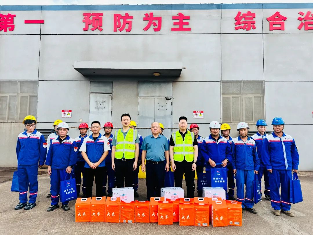 近日,受集团党委、董事会委托,集团总经理袁欣率队前往大丰港区边检站和通用码头,为坚守在高温下的职工送去关怀与清凉,切实保障高温环境下一线职工的劳动安全与身体健康。