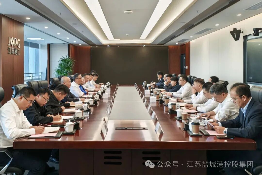 10月22日,集团党委书记、董事长陆帅,总经理袁欣带队赴江苏省港口集团拜访,与省港口集团党委书记、董事长陈明,总经理、党委副书记王洪涛座谈交流,进一步深化港港合作,推动产业对接、航道互通,更好服务区域协同发展,为“水运江苏”建设添势赋能。省港口集团副总经理、党委委员唐文,盐城港集团党委委员、副总经理丁安广、陈正华,以及相关单位和部门负责同志等参加。