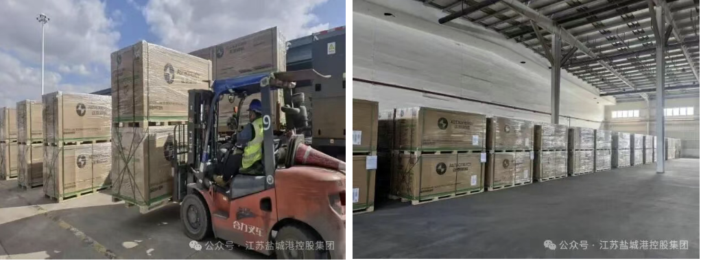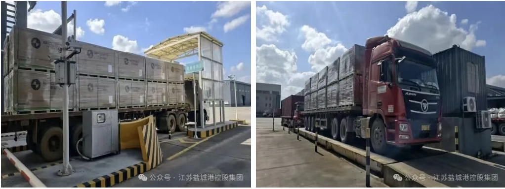 10月23日,盐城港保税物流中心卡口处机器轰鸣,数十辆满载光伏组件的卡车依次驶入,经卡口系统核验后完成通关流程,顺利进入保税物流中心存储。此批货物来自正泰光伏新能源企业,首批业务共计40TEU,货值约560万元,预计可为企业实现提前退税约50万元;后续将有数百TEU货物通过“保税仓储+出口退税”模式灵活调配至海外市场。