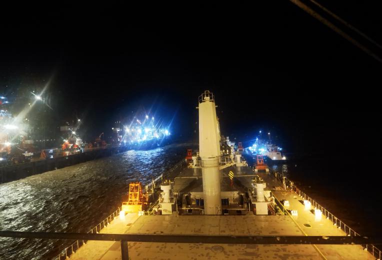 近日,为给凌晨到港的利比里亚籍“环球贤者”轮腾出宝贵靠泊窗口,引航站深夜奔赴港口一线,登上马耳他籍“米拉”轮,开启了一场与时间赛跑的夜间作业。