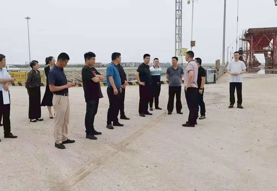7月8日下午,盐城市边检站站长顾志祥率队来射阳港区调研,现场了解港区查验设施推进情况,并展开深入交流。建设集团总经理王健枫、射阳港区副总经理董栋梁,以及相关设计单位负责同志参加。