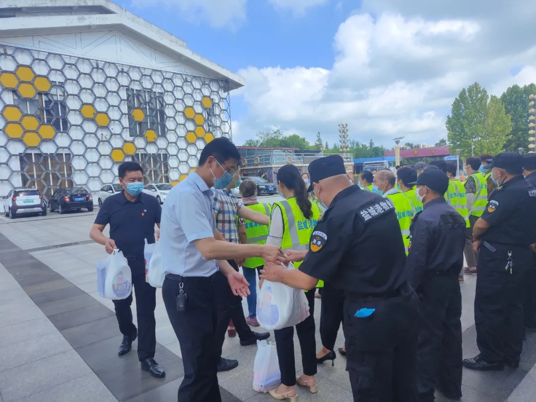 在一线物业项目点,方海东看望慰问了在高温下仍坚守服务一线的项目工作人员,并对他们致以亲切问候和衷心感谢。他表示,现阶段疫情防控形势仍十分严峻,应对任务复杂艰巨,在盐城港集团统一领导部署下,要坚决守牢第一道防线,牢固树立“后勤不后”的工作理念,进一步提高思想认识,切实扛起责任担当,多措并举抓牢抓实抓严疫情防控执行工作,为盐城港集团大后方竖起坚固的防护墙。