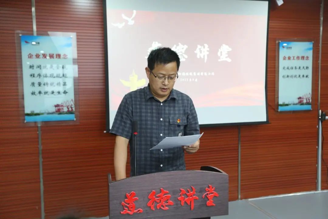 8月27日,大丰港区开展道德讲堂活动,大丰港集团党委委员、董事陆峰主持,集团工会、党群工作部相关人员,各公司工会副主席、优秀职工代表,各公司子女参加高考的职工代表参加。