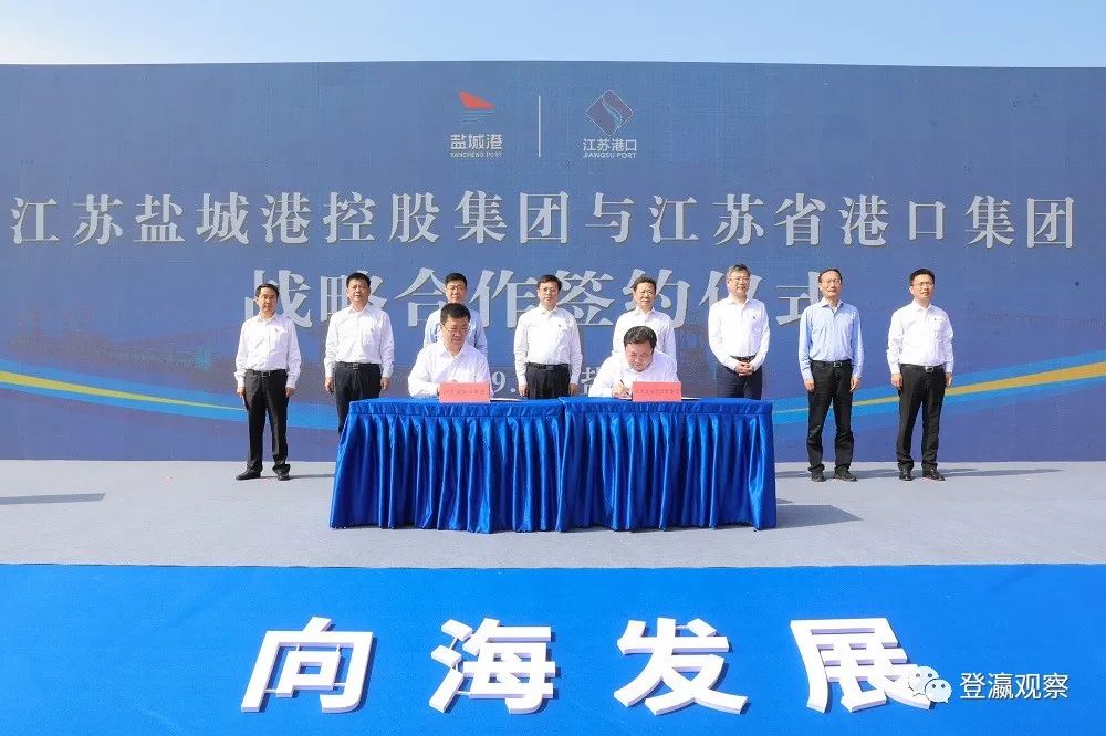 ▲江苏盐城港控股集团与江苏省港口集团举行战略合作签约仪式
