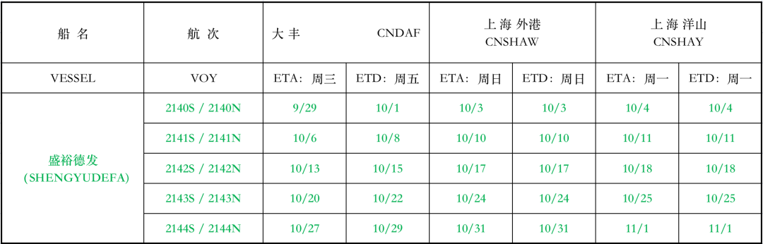 沪盐专线2021年10月份沿海线船期表